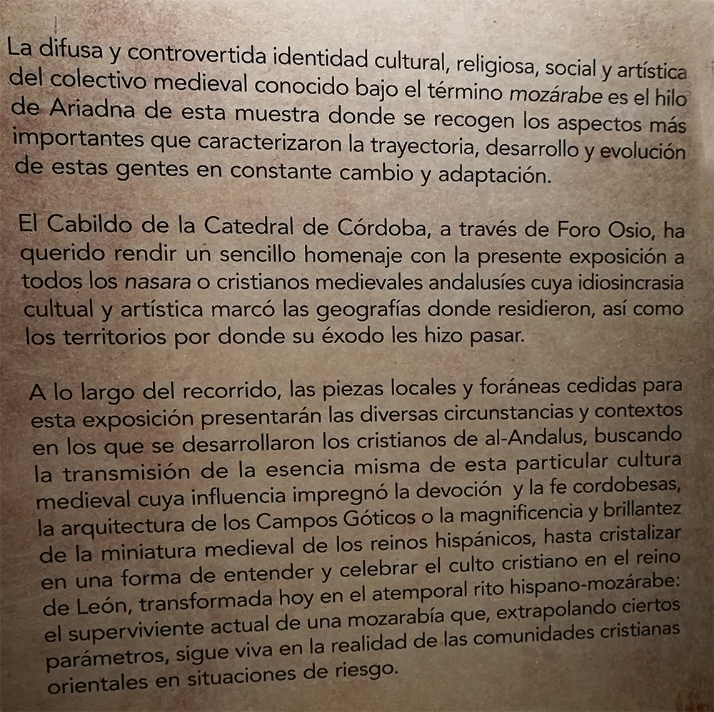 El pasado mes de noviembre Estudio Honorio Aguilar asistió al I Congreso Internacional sobre Cultura Mozárabe celebrado en Córdoba. La exposición ‘Nasara: Extranjeros en su tierra’, puso el broche de oro a la amplia programación de este evento único. Un bello nombre para una cultura bastante desconocida: la de los cristianos que pervivieron en territorio ocupado por los árabes en la península ibérica a partir del siglo VIII, y que a medida que en los distintos reinos de Al Andalus y especialmente con el Califato de Córdoba, sus condiciones de vida resultaron más difíciles, se fueron desplazando al Norte, allá donde los reinos cristianos emergentes necesitaban población. En estos reinos cristianos desarrollaron su propia cultura de la que quedan magníficos ejemplos en Castilla y León, Cantabria, Navarra, Aragón y Cataluña.
