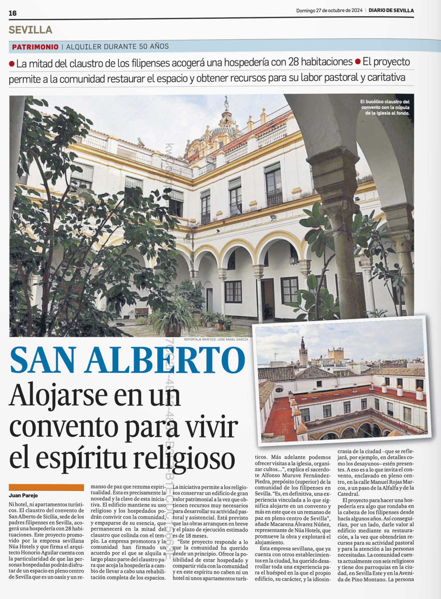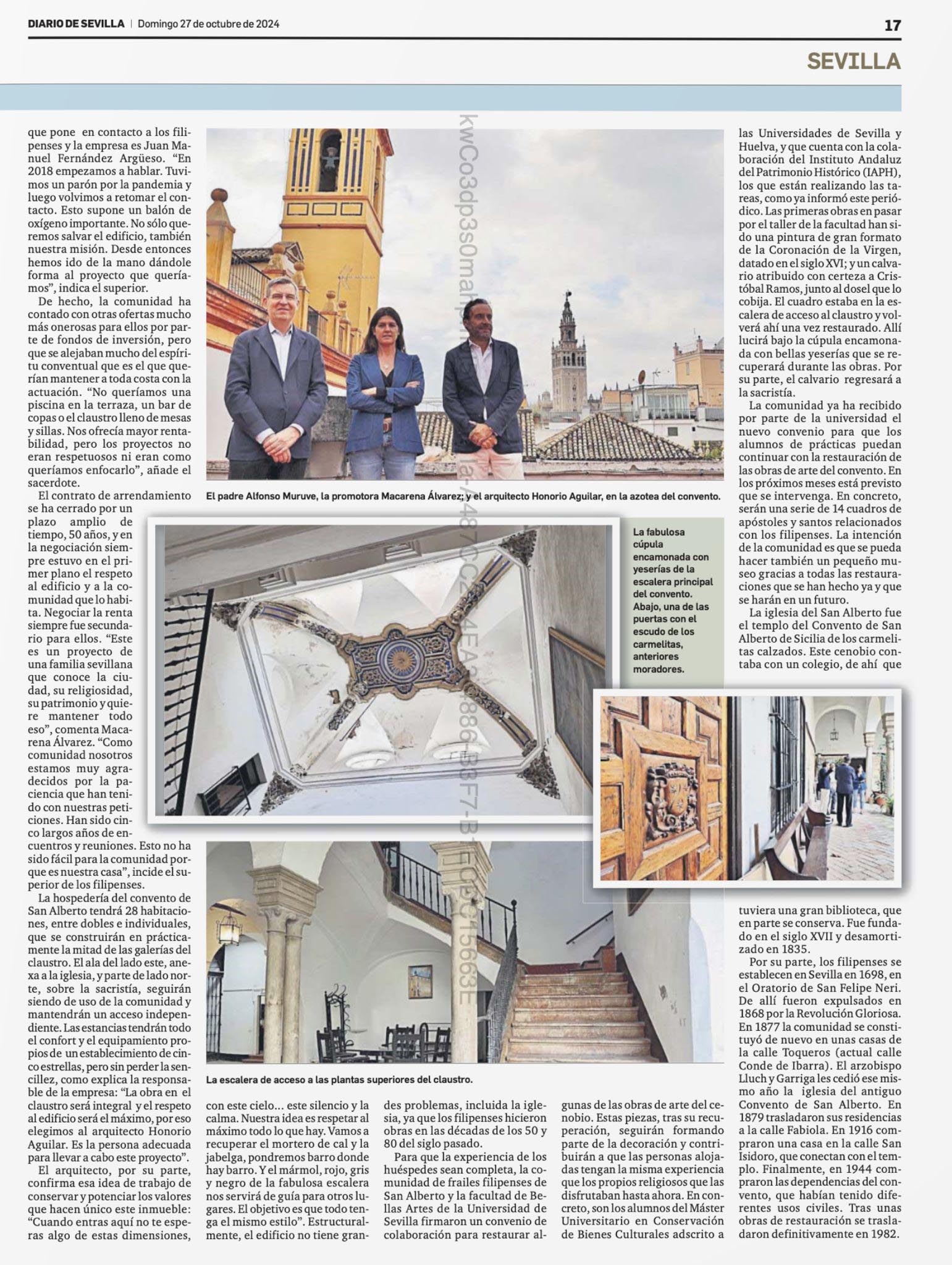 Seguimos acumulando reportajes y menciones a nuestros trabajos en distintos medios de información. Hoy, destacamos por aquí el reportaje que han hecho en Diario de Sevilla sobre el trabajo realizado por Estudio Honorio Aguilar en el Convento de San Alberto de Sevilla.