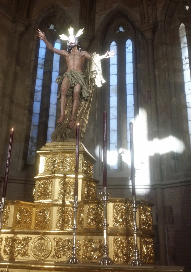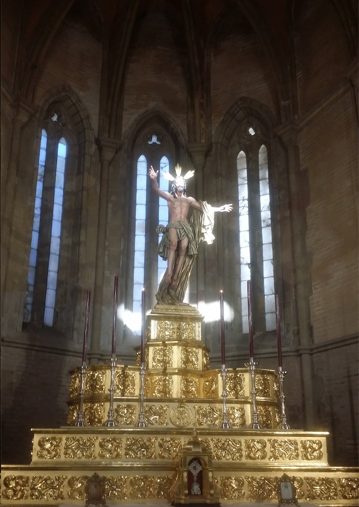 En el caso de las iglesias mudéjares de Sevilla, cuya orientación, como venimos indicando, cuyas naves se disponen longitudinalmente sobre el eje Este-Oeste, con el ábside hacia levante y la fachada principal a poniente, se producen en estas fechas efectos singulares como el que ocurrirá en los próximos días entre las 19,15 h. y las 19,45 h. en la iglesia de Santa Marina, de la calle San Luis, con la entrada directa de los rayos del sol a través del rosetón situado sobre la puerta principal del templo, atravesando la nave central hasta llegar al ábside y en concreto iluminando la imagen de Cristo Resucitado perteneciente a la Hermandad de la Resurrección, la cual preside el templo. La razón por la que este efecto no coincide con el equinoccio y se produce en días posteriores es que el eje de la iglesia de Santa Marina se encuentra desviado 11º sobre el eje este-oeste,con la fachada principal perpendicular a este eje y ligeramente desviada hacia el Noroeste. El templo tiene horario de apertura por la tarde de lunes a jueves de 19,00 h. a 21,00 h.