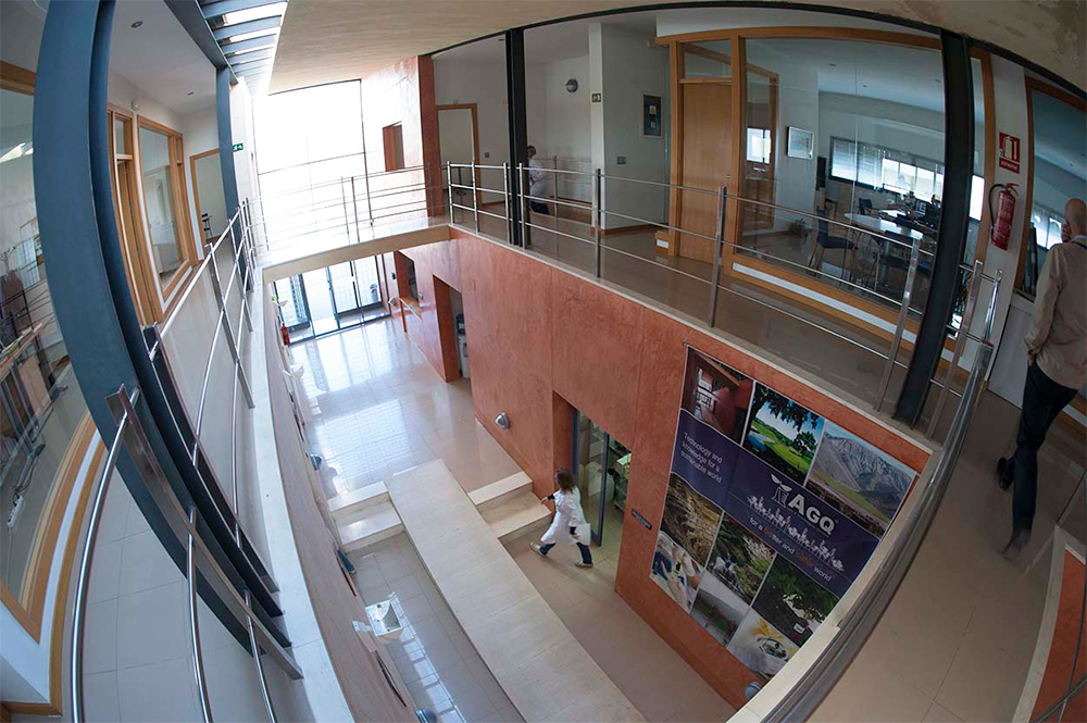 Edificio de nueva planta que consta de una entrada a doble altura que se convierte en eje longitudinal de la edificación. La disminución del ancho y alto a medida que se desarrolla el edificio provoca una perspectiva más acentuada, rematada con la planta elíptica de la sala de formación a la que se acceso desde un espacio semiexterior. La doble altura de todo el eje longitudinal y la entrada de luz cenital en el mismo, permiten la conexión de los diferentes módulos que se suceden a ambos lados de las dos plantas del edificio.