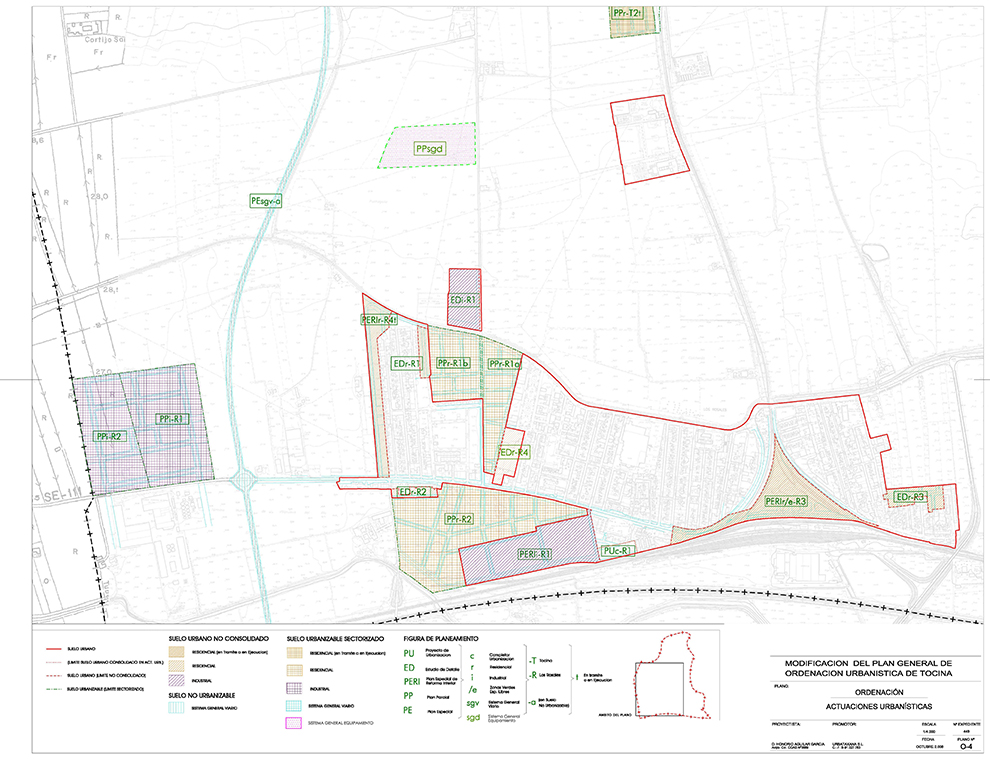 El sector de referencia (Sistema General de Equipamiento) se encuentra situado en la carretera que une los núcleos urbanos de Tocina y Los Rosales (carretera prolongación de calle Francisco de Salinas). El uso de este Sistema General de Equipamiento es en concreto de un nuevo recinto ferial, destinado a la celebración de las ferias de los dos núcleos de población que conforman el municipio.